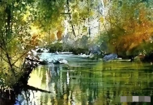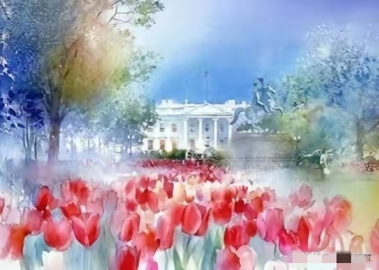 妮塔·恩格尔的水彩世界,似被晨曦吻过的梦境。她的笔尖蘸取了日光最绵软的部分,将鎏金色的光晕轻轻揉碎在纸面——那光不是锐利的锋芒,而是像春溪漫过鹅卵石般,以丝绸般的质感洇染开去。浅柠黄与淡樱粉在潮润的水痕间交融,仿佛朝露正裹着花瓣簌簌坠落;暖琥珀色的阴影边缘浮动着珍珠母贝的微芒,连空气都浸透了蜂蜜般黏稠的甜暖。那些朦胧的色块如同被风撩动的薄绡,每一道笔触都裹着云絮似的柔软绒毛,让人恍惚看见阳光正从画布深处汩汩流淌,将万物镀成半透明的琥珀,连时光都在这氤氲的光雾里放慢了脚步。