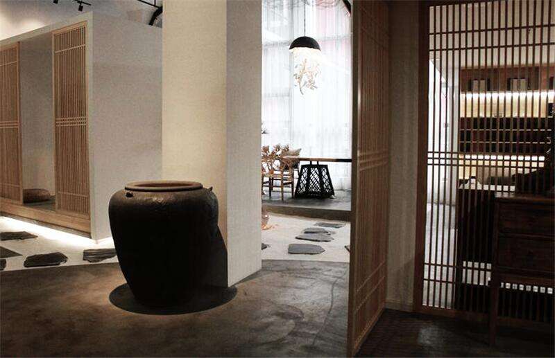 不过,景界亦是境界,高山流水美景幽径,具象化的事物,也可以抽象的表示。奇石是为高山、巨案化为流水、屏风做竹林、风铃似鸟鸣。完美的空间加上茶道的含蓄,茶空间应运而生。